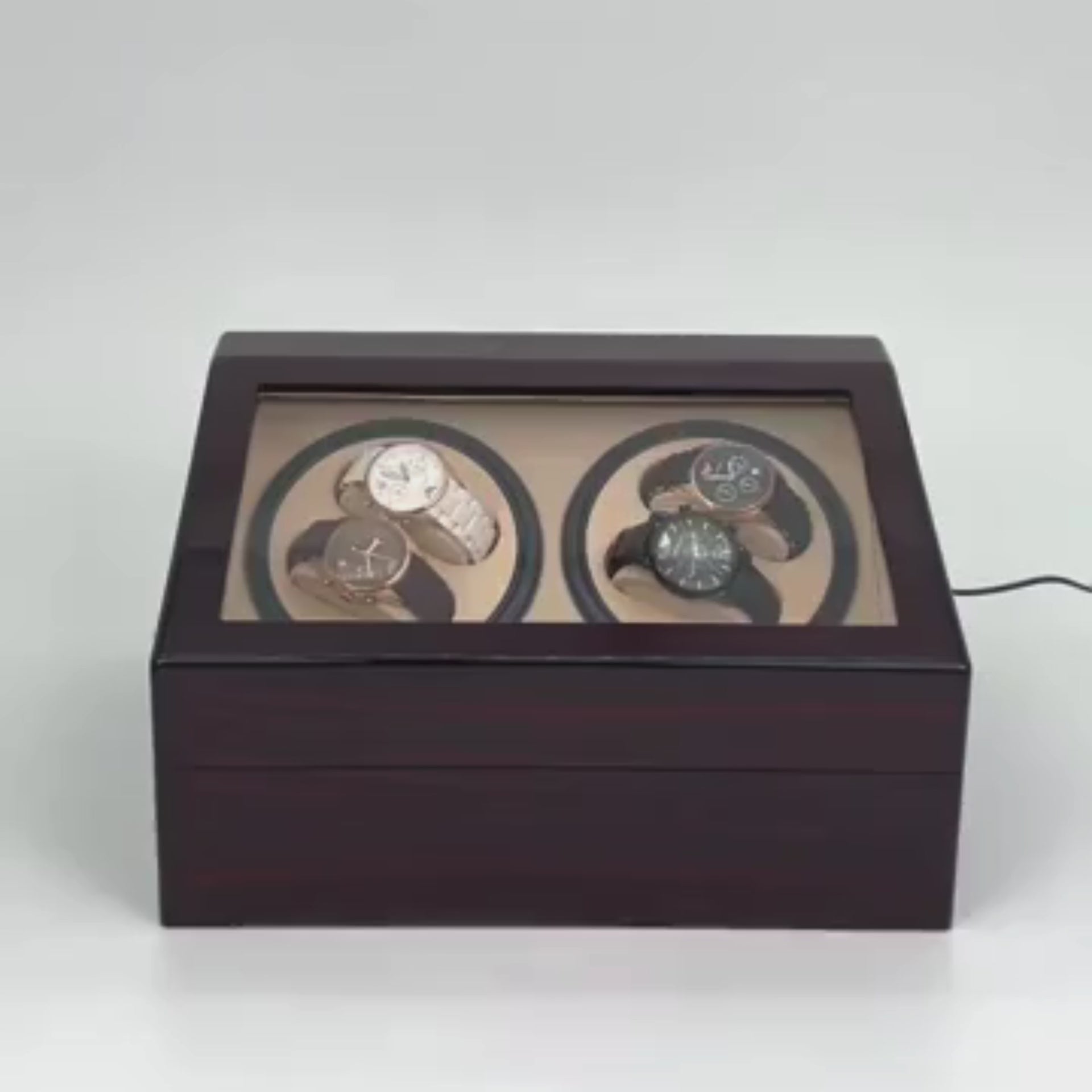 Le Remontoir Beige 4 emplacements offre la combinaison parfaite entre élégance, sécurité et fonctionnalité. Son fonctionnement silencieux et ses modes de rotation polyvalents garantissent que vos montres sont maintenues en parfait état tout en ajoutant une touche sophistiquée à votre décoration.